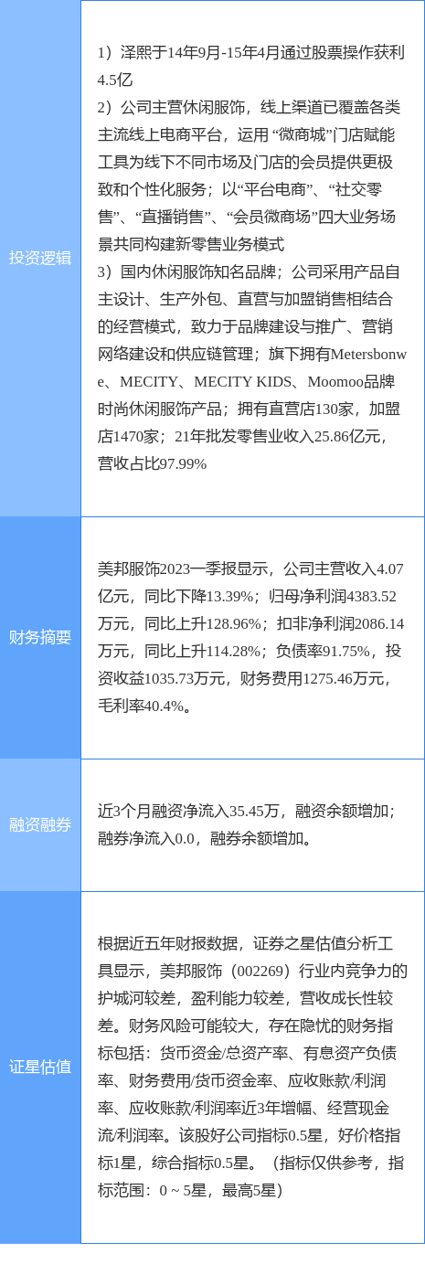 美邦服饰涨停收盘,收盘价1.77元。该股于10点28分涨停,未打开涨停,截止收盘封单资金为5037.84万元,占其流通市值1.13%。