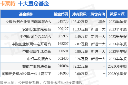 根据2023半年报公募基金重仓股数据,重仓该股的公募基金共6家,其中持有数量最多的公募基金为交银数据产业灵活配置混合A。交银数据产业灵活配置混合A目前规模为15.87亿元,最新净值2.035(7月19日),较上一交易日下跌1.1%,近一年下跌1.61%。该公募基金现任基金经理为田彧龙。田彧龙在任的基金产品包括:交银产业机遇混合,管理时间为2020年9月24日至今,期间收益率为-2.54%。