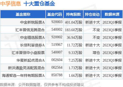 重仓中孚信息的公募基金请见下表: