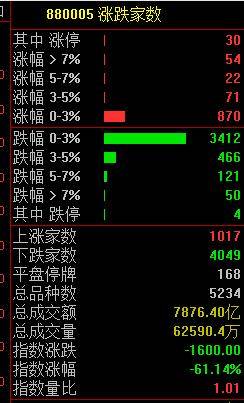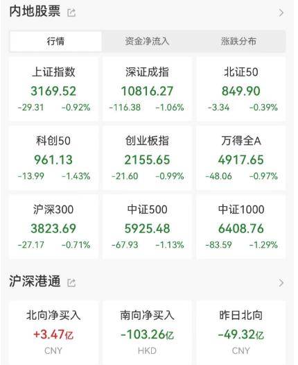两市共1017只个股上涨,4049只个股下跌,北向资金净买入逾3亿元。