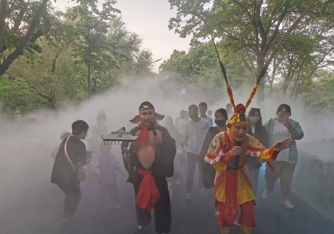 整个乐园可谓是沉浸版的西游王国,IP人物造型逼真,大手笔的干冰营造仙境氛围。