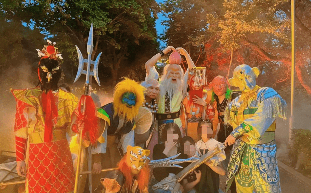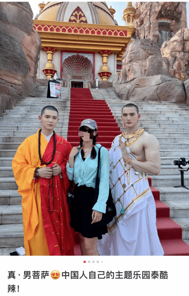 “合影不花钱,还有演出。猪八戒唱歌还跟孩子互动,老有意思了!”