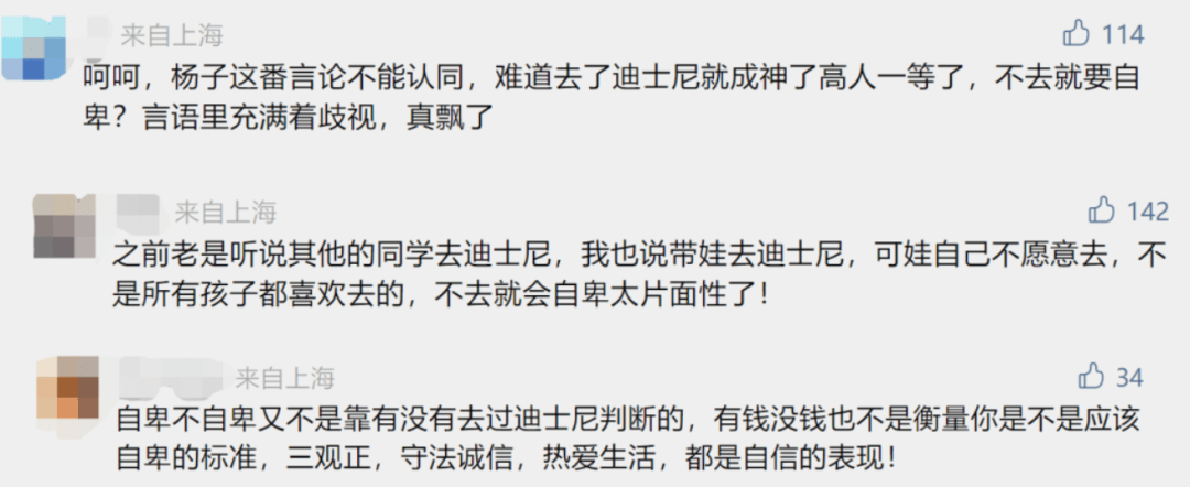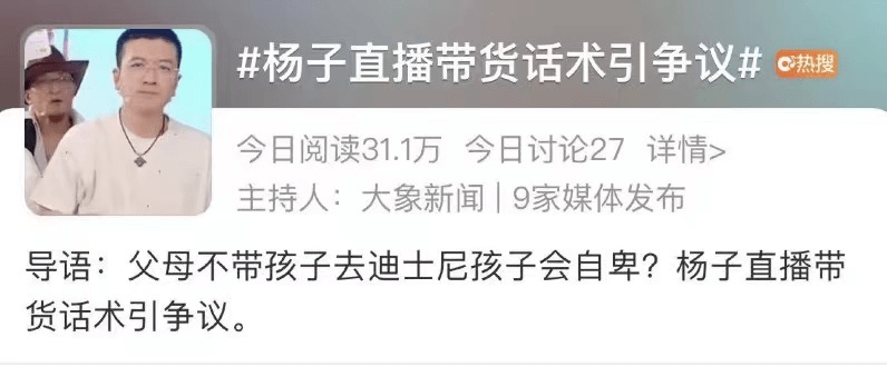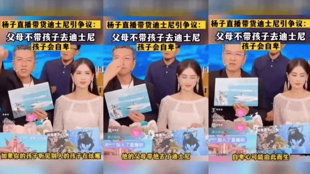 直播过程中,杨子激动大喊:“如果别的孩子在炫耀父母带他去迪士尼,而你没有带,他的自卑心可能由此而生!”