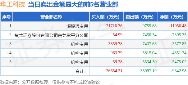 沪深交易所2023年7月20日公布的交易公开信息显示,华工科技(000988)因日跌幅偏离值达到7%的前5只证券登上龙虎榜。此次是近5个交易日内第1次上榜。