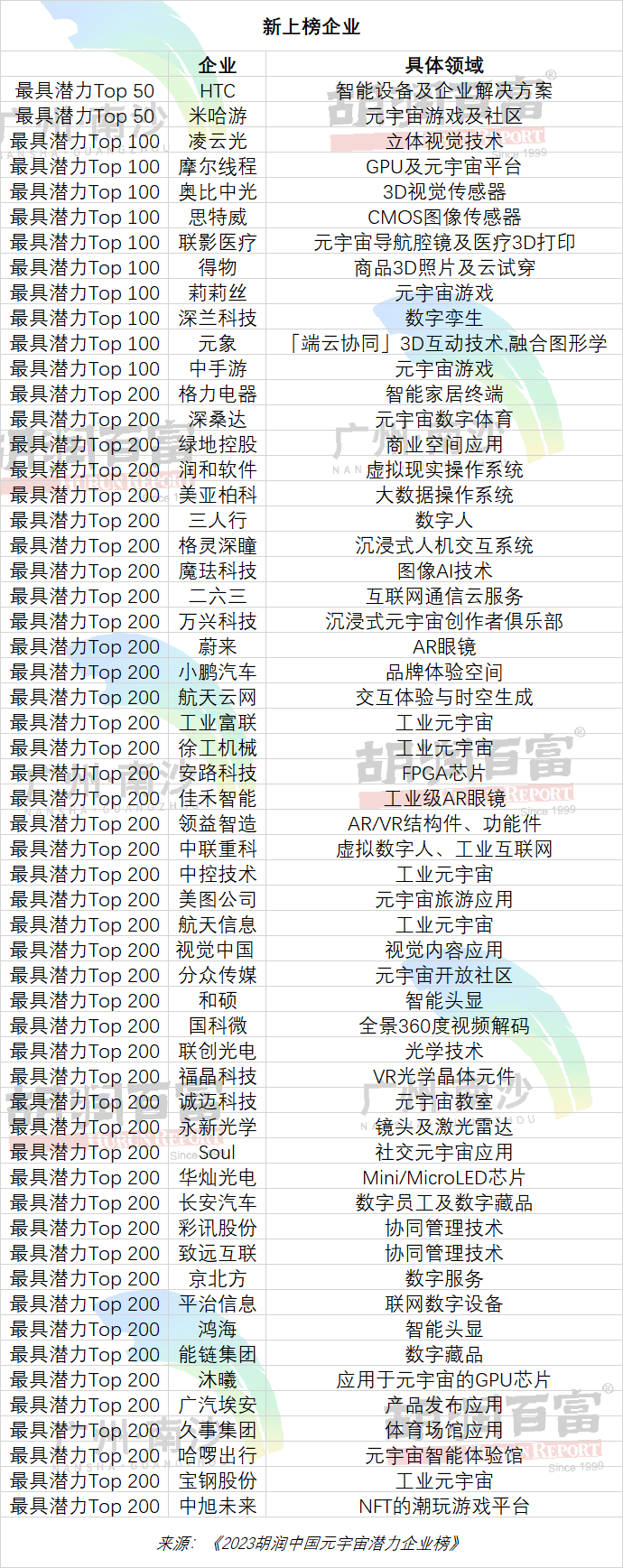 新上榜企业57家,以HTC、米哈游、联影医疗为代表。
