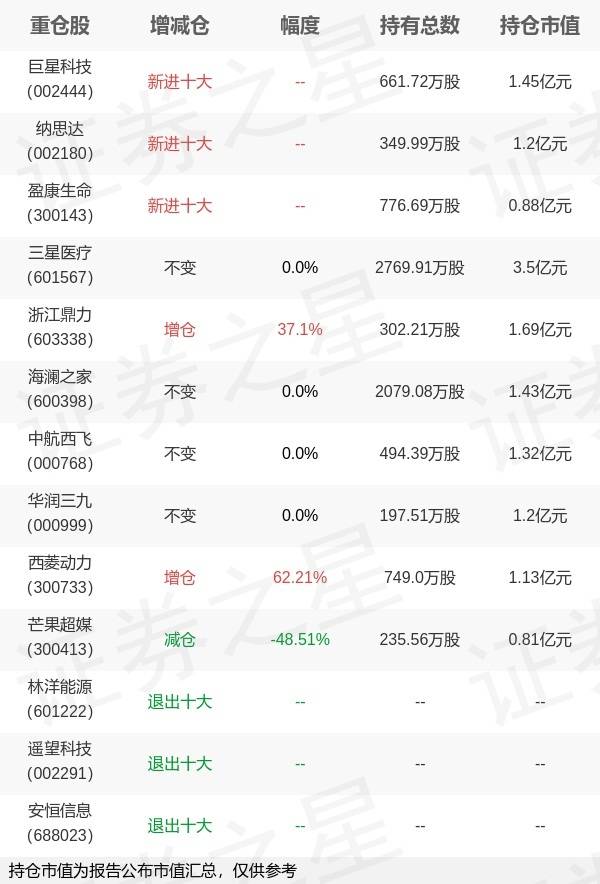 7月20日华安基金旗下石雨欣 陆奔管理的华安安康灵活配置混合型基金公布中报,近1年净值增长率0.77%。与上一季度相比,该基金前十大重仓股新增巨星科技,纳思达,盈康生命;其中三星医疗持仓占比4.0%,为该基金第一大重仓股;林洋能源,遥望科技,安恒信息等退出前十大重仓股;详细数据如下: