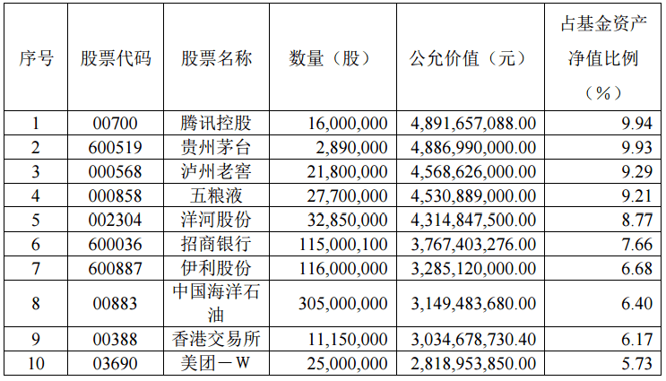 以易方达基金的张坤为例,其管理规模最大的易方达蓝筹精选中报显示,该基金二季度股票仓位基本稳定,重仓股无新进或退出情况,当中增加了消费等行业的配置,降低了科技等行业的配置。该基金前十大重仓股当中,“茅五泸洋”四大白酒股悉数到齐,其中贵州茅台的持仓占基金资产净值比例超过9.9%,距顶格只差一步。按照张坤在中报中的说法,他认为组合中公司提供的产品和服务的需求增速会超越GDP的增速,并且这些公司有较强的业务壁垒和‘护城河’,能够将收入增长转化为利润和自由现金流的增长。