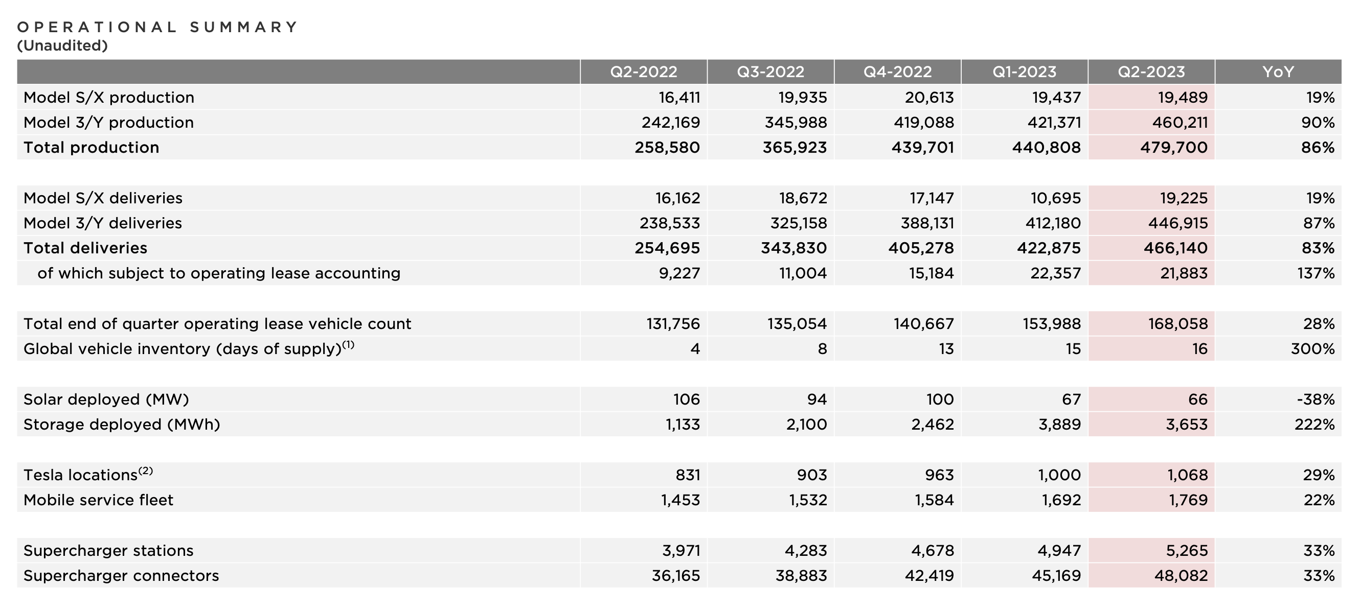 该公司表示,“尽管我们在第一季度、第二季度早期进行了价格下调,但我们的营运利润率仍保持在10%左右的健康水平。由此可以看到,我们在降低成本方面作出的持续努力,柏林和得克萨斯超级工厂不断提升的产能,以及我们能源、服务和其他业务的强劲表现。”