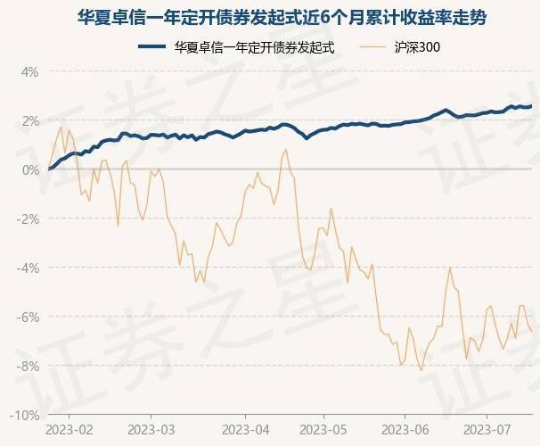 7月18日,华夏卓信一年定开债券发起式最新单位净值为1.0294元,累计净值为1.0294元,较前一交易日上涨0.05%。历史数据显示该基金近1个月上涨0.24%,近3个月上涨0.72%,近6个月上涨2.52%,近1年上涨2.07%。该基金近6个月的累计收益率走势如下图:
