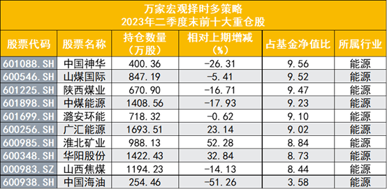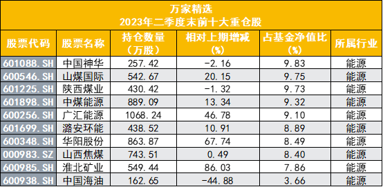 其他2只基金的重仓股标的与万家宏观择时多策略相似,均聚焦在煤炭、油气等能源板块。如万家精选,该基金十大重仓股分别为中国神华、山煤国际、陕西煤业、中煤能源、广汇能源、潞安环能、华阳股份、山西焦煤、淮北矿业、中国海油,同样减持了陕西煤业、中国神华、中国海油,其他个股得以加仓。