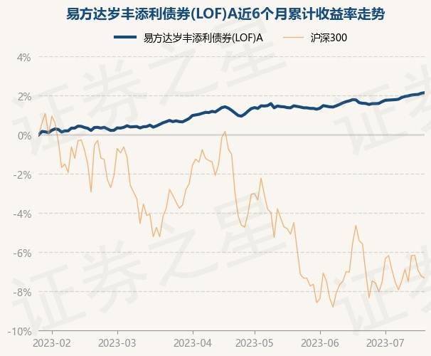 7月19日,易方达岁丰添利债券(LOF)A最新单位净值为1.5908元,累计净值为2.5018元,较前一交易日上涨0.03%。历史数据显示该基金近1个月上涨0.49%,近3个月上涨0.76%,近6个月上涨2.16%,近1年上涨2.3%。该基金近6个月的累计收益率走势如下图: