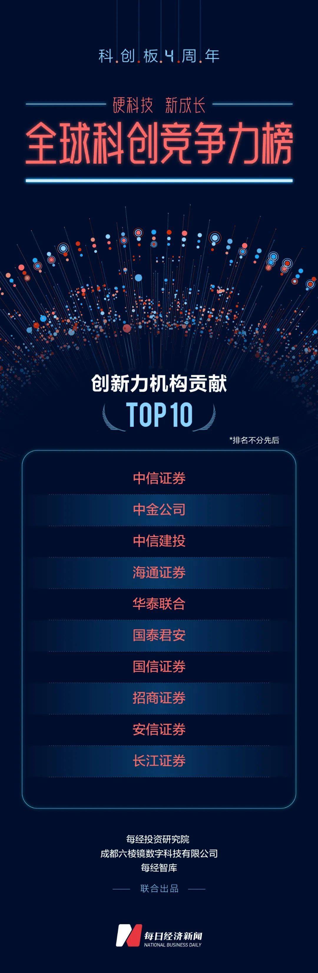创新力机构贡献:中信、中金领军TOP10
