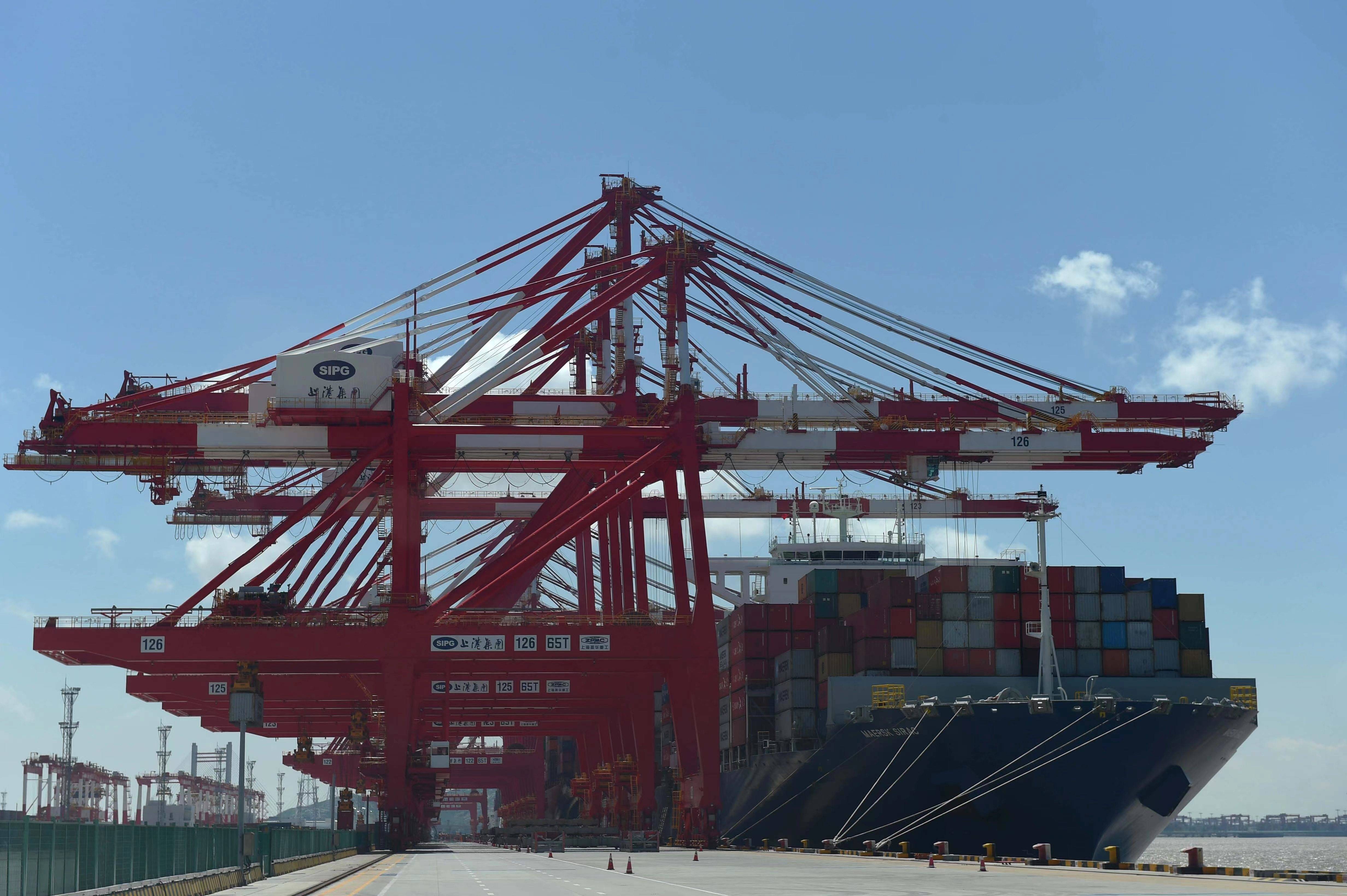 图为上海洋山口岸集装箱船正在作业。(杨冀鲲 摄)