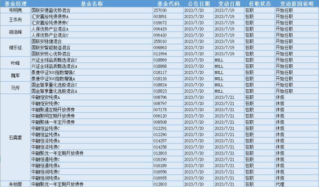 根据巨灵统计的数据显示,近30天(6.20-7.20)共有400只基金产品的基金经理发生离职变动。其中今天(7.20)有18只基金产品发布基金经理离职公告,从变动原因上来看,有4位基金经理是由于工作变动而从管理的12只基金产品中离职,有1位基金经理是由于个人原因而从管理的4只基金产品中离职,另外还有2只基金产品到期而导致1位基金经理发生变动。