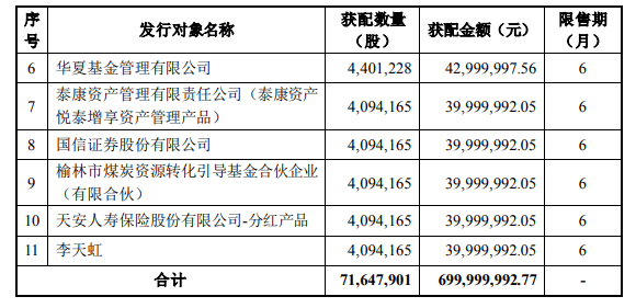 凯美特气7月20日公告,定增募资已完成,募资总额7亿元,发行数量为7164.79万股,增发价格为9.77元/股。根据公告,本次发行对象为包括诺德基金、财通基金、华夏基金在内的11家对象。