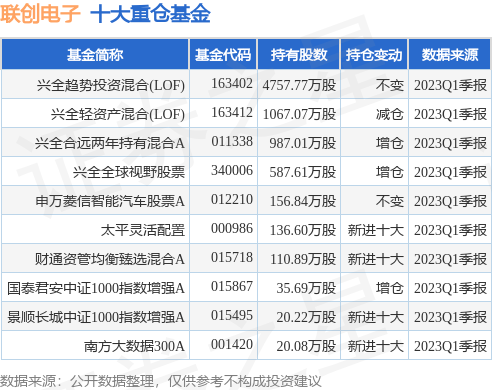 重仓联创电子的前十大公募基金请见下表: