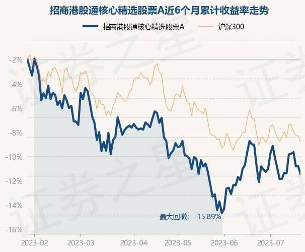 7月20日,招商港股通核心精选股票A最新单位净值为0.7291元,累计净值为0.7291元,较前一交易日下跌0.91%。历史数据显示该基金近1个月下跌3.28%,近3个月下跌6.16%,近6个月下跌11.78%,近1年下跌12.7%。该基金近6个月的累计收益率走势如下图: