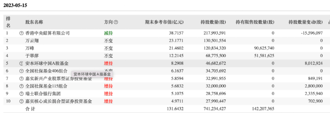 数据显示,截至5月15日的基金数据显示,安本投资旗下的一只中国A股基金持有4668.27万股华测检测为第五大股东。相较于一季度末增持超过800万股。瑞银也持有2876万股增持234万股。