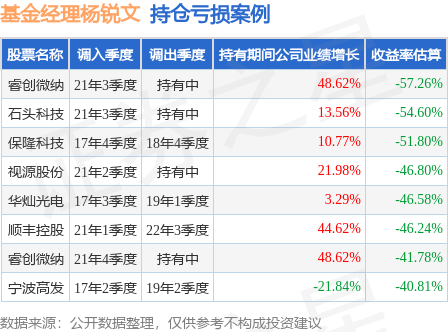 杨锐文管理的景顺长城环保优势股票基金在21年3季度买入睿创微纳,已连续持有1年又3个季度。持有期间的估算收益率为-57.26%,持有期间睿创微纳在2021年到2022年的年报营业总收入增幅达48.62%。