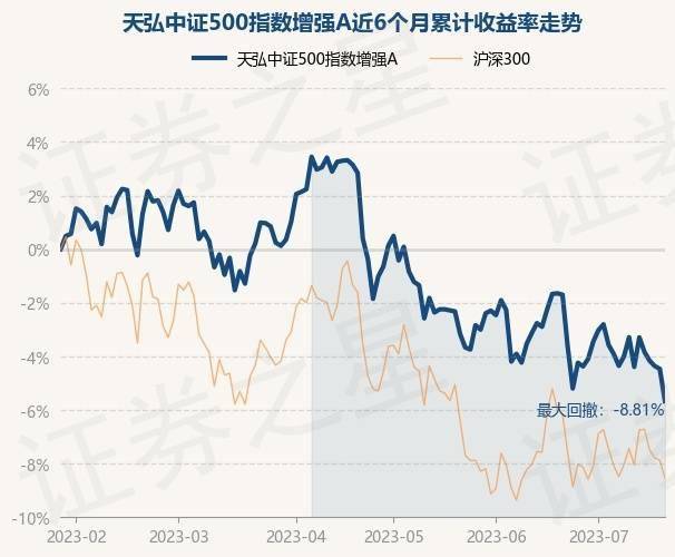 7月20日,天弘中证500指数增强A最新单位净值为1.1619元,累计净值为1.1619元,较前一交易日下跌1.26%。历史数据显示该基金近1个月下跌4.01%,近3个月下跌8.25%,近6个月下跌5.67%,近1年下跌11.29%。该基金近6个月的累计收益率走势如下图: