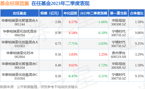 截止2023年二季度末,基金经理笪篁旗下共管理6只基金,本季度表现最佳的为华泰柏瑞量化对冲(002804),季度净值涨1.25%。
