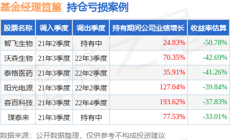 笪篁管理的华泰柏瑞量化创盈混合A基金在21年2季度买入智飞生物,已连续持有2年又0个季度。持有期间的估算收益率为-50.78%,持有期间智飞生物在2021年到2022年的年报营业总收入增幅达24.83%。