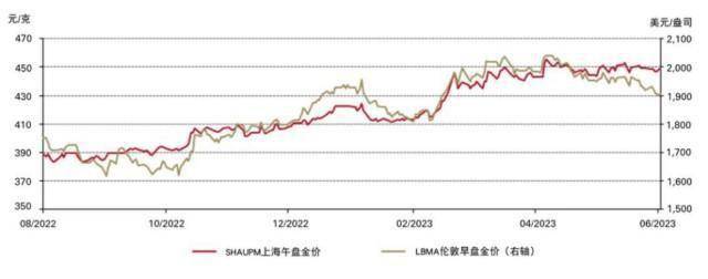 溢价也反映了上半年国内上游实物黄金需求的变化。在中国放开新冠防疫政策后,上游实物黄金需求反弹,市场对未来需求的预期也更为乐观,这些因素都推动了一季度价差扩大。但季节性因素、国内金价上涨和经济复苏势头放缓对二季度黄金消费又造成了负面影响,导致3月后溢价收窄。