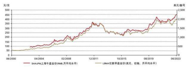 ■尽管6月金价疲软,2023年上半年以美元计价的伦敦LBMA早盘金价和以人民币计价的上海SHAUPM午盘基准金价仍分别上涨5%和9%,上半年人民币对美元的贬值是造成该显著差异的原因