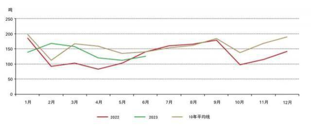■6月,上海黄金交易所(SGE)的黄金出库量较上月增加13吨至125吨。2023年上半年的上游实物黄金需求为824吨,同比增长16%,但仍低于近10年平均水平