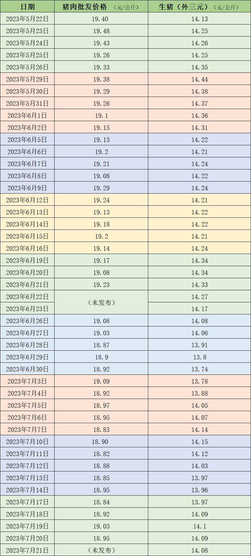 据农业农村部监测,7月20日,全国农产品批发市场猪肉平均价格为18.95元/公斤,与上周五(7月14日)的18.95元/公斤持平。本周的平均价格为18.94元/公斤,与上周18.88元/公斤的均价相比,上涨0.3%。