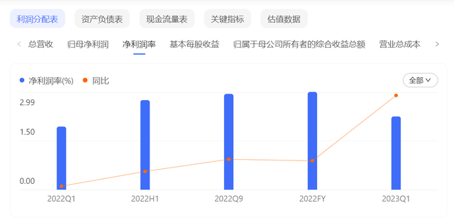 不过,公司毛利率却长期处于较低水平。财报显示,2019年至2022年期间, 浪潮信息的销售毛利率分别为11.97%、11.7%、11.44%、11.18%,呈现出逐年下滑的趋势。净利率更是多年处于3%以下。