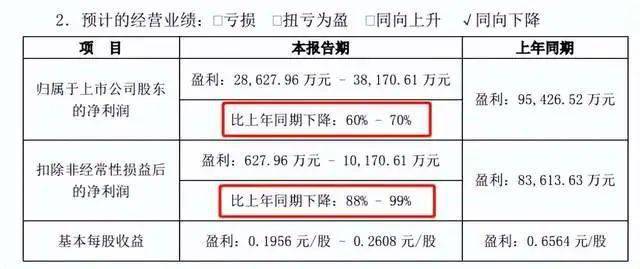 掌权者更替背后, 公司业绩方面也暗藏大雷,预计上半年归母净利润为2.9亿元至3.8亿元,同比下降60%至70%,直接腰斩!