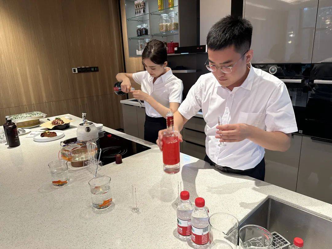 答谢晚宴环节,活动现场精心安排的两项科普小实验吸引了嘉宾的关注,在工作人员的解说下,大家直观感受到了老白干香型白酒醉得慢、醒酒快的特点,同时见证了甲等20十八酒坊纯粮固态发酵、老酒含量丰富的特征。在衡水老白干营销有限公司石家庄大区经理赵兰鳔主持下,与会嘉宾共同品鉴更健康的高端白酒——衡水老白干1915,并对衡水老白干的卓越品质及其所倡导的健康饮酒理念表示高度认可。
