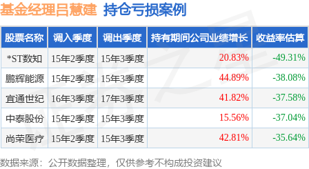 吕慧建管理的华泰柏瑞行业领先混合基金在15年2季度买入*ST数知,在持有1个季度后在15年3季度卖出。持有期间的估算收益率为-49.31%,持有期间*ST数知在2014年到2015年的年报营业总收入增幅达20.83%。