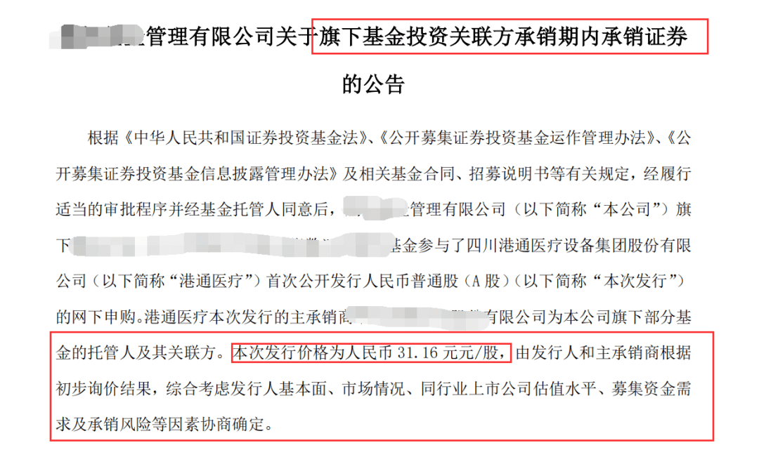 《XX基金管理有限公司公告》,是北方某大型公募经常披露的公告标题。这个标题毫无指向信息,点开一看,才知道内容是该公司旗下基金的关联交易情况。比如该公募7月15日发布的公告显示,该基金的关联交易涉及几家托管券商,获配了维科精密、港通医疗、康鹏科技三只证券。但该公告并没有交代清楚,这些基金参与的是打新还是定增业务,也没有交代相关基金获配证券的数量,只交代了基金获配金额。
