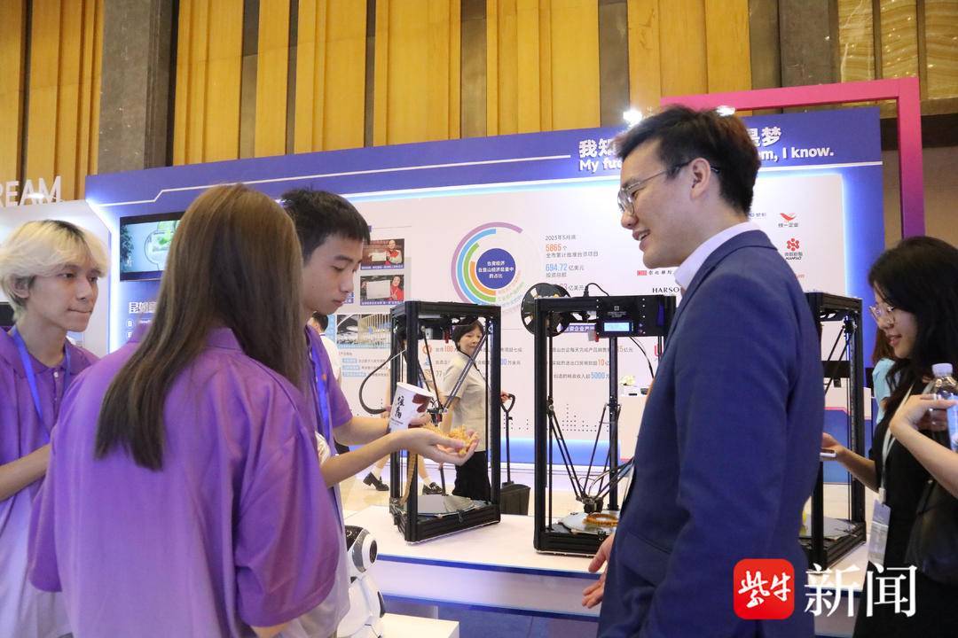研讨会主会场还设置了小型的企业展示区,数家在昆台资企业在现场进行产品和技术展示,向台青介绍在昆台资企业的发展成果。不少实习、就业、创业台青,围聚在现场体验3D打印、快闪打卡等“新鲜”设备,不亦乐乎。在昆山实习的台湾大学生李昀谖告诉记者:“我才来大陆四天,第一次体验到即日达的快递,第一次知道办电话卡原来这么迅速和方便,我的实习工作氛围也很不错,还有饭补和住宿补贴呢!”