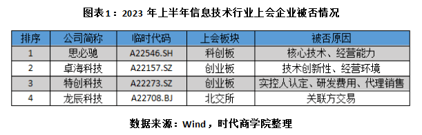 如图表1所示,上述4家被否企业中,有3家企业分别涉及核心技术、技术创新性、研发费用问题,可见信息技术企业的科技创新能力备受监管机构的关注。