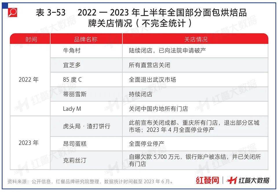 2023年,有“烘焙第一股”之称的烘焙品牌克莉丝汀宣布全面闭店。此外,新中式烘焙品牌虎头局·渣打饼行和网红烘焙品牌昂司蛋糕全面停业停产。