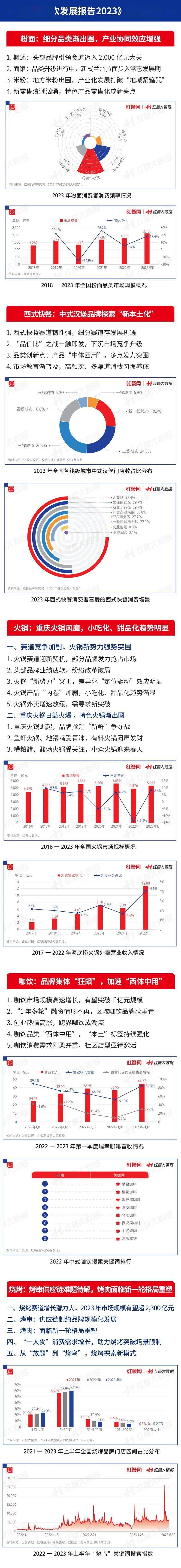 《中国餐饮发展报告2023》借助沉淀了6年的红餐大数据和一手的调研数据,精准捕捉了25+餐饮领域的新变化,可以为餐饮人2023年下半年乃至2024年的经营决策提供数据支撑以及指明方向。