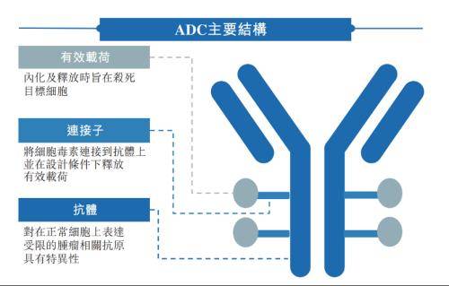 ADC是指通过一个化学连接子将具有细胞毒性的小分子药物(即有效载荷)共价连接(亦称为偶联)至生物成份(即抗体)上,这种组合设计可能会降低传统化疗的脱靶毒性,同时提高药效,从而改善治疗窗口和疗效。