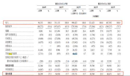 招股书显示,2020-2023年3月31日,其收入为9635.3万元、3.11亿元、9.90亿元、4.88亿元;期内利润2629.9万元、5493万元、1.56亿元、8067.1万元。