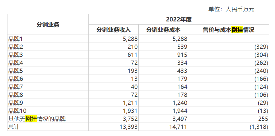 销售与成本倒挂情况