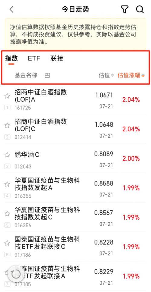 天天基金平台上,同样除指数、ETF、指数联接产品目前还有净值估算功能外,其余产品均已下线该功能。