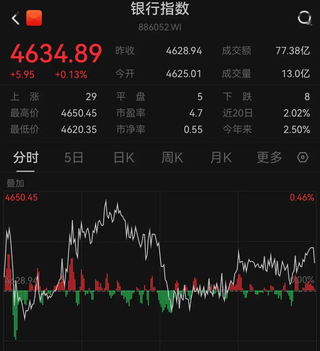 21日全天A股低开高走后又冲高回落,Wind中国行业银行指数微涨0.13%。