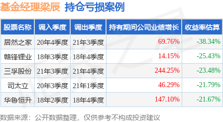 梁辰管理的财通内需增长12个月定开混合基金在20年4季度买入居然之家,在持有3个季度后在21年3季度卖出。持有期间的估算收益率为-38.34%,持有期间居然之家在2020年到2021年的年报归属净利润增幅达69.76%。