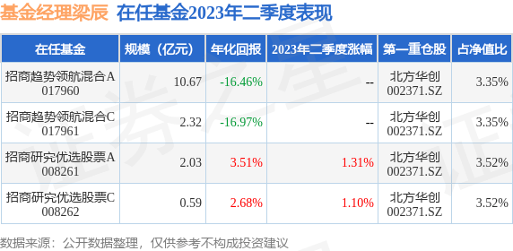 截止2023年二季度末,基金经理梁辰旗下共管理4只基金,本季度表现最佳的为招商研究优选股票A(008261),季度净值涨1.31%。