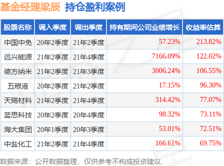 梁辰管理的财通多策略精选混合(LOF)基金在20年2季度买入中国中免,在持有1年又0个季度后在21年2季度卖出。持有期间的估算收益率为213.82%,持有期间中国中免在2020年到2021年的年报归属净利润增幅达57.23%。