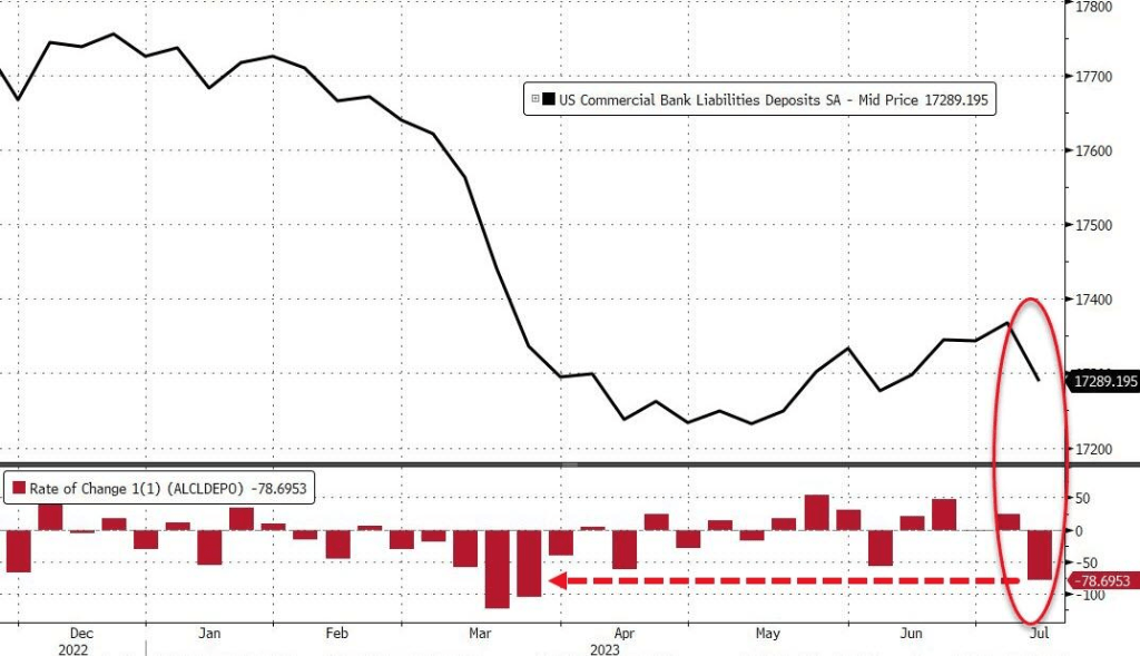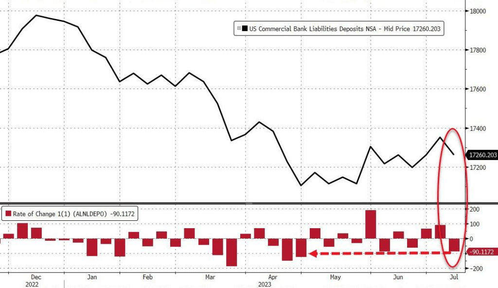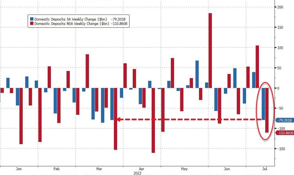 因此,在美国国内,银行的存款挤兑又出现了,不论是季节调整还是非季节调整,都出现了大量的存款外流。