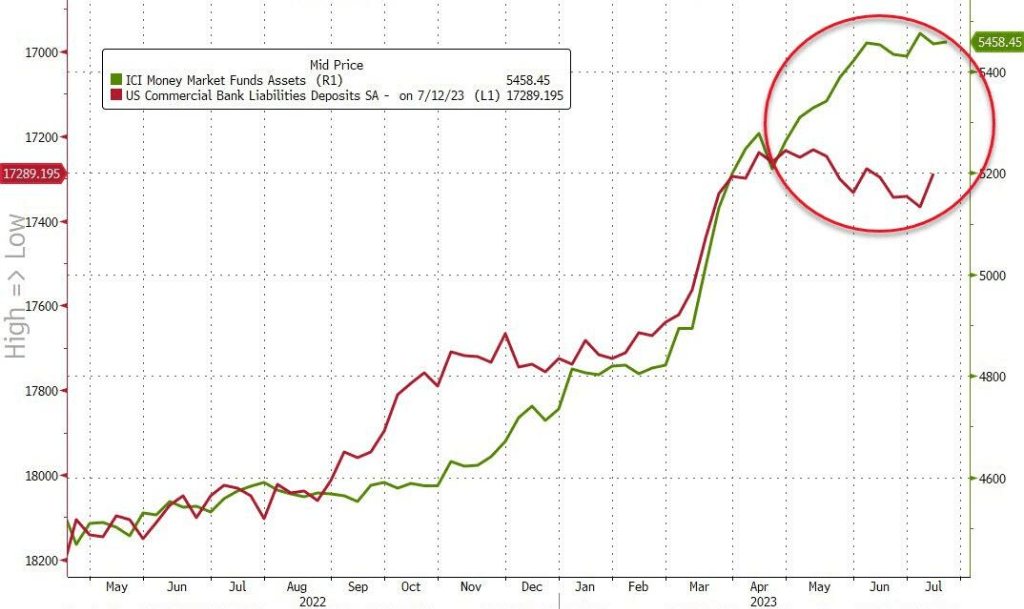 这意味着流入货币市场基金的资金和流出银行存款之间的差距开始缩小。