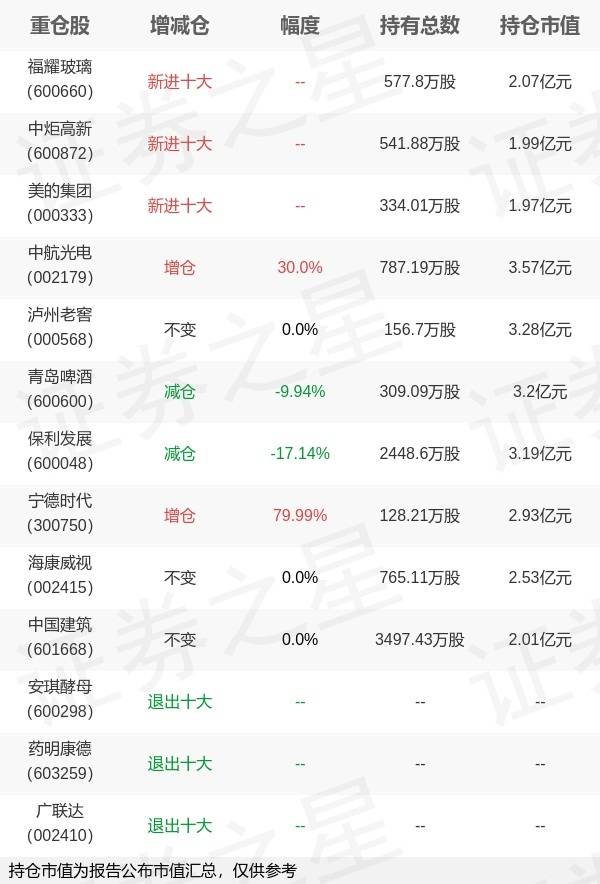 7月20日工银瑞信基金旗下修世宇管理的工银瑞信文体产业股票型基金公布中报,近1年净值增长率-9.97%。与上一季度相比,该基金前十大重仓股新增福耀玻璃,中炬高新,美的集团;并对中航光电增仓181.66万股,为该基金第一大重仓股;安琪酵母,药明康德,广联达等退出前十大重仓股;详细数据如下: